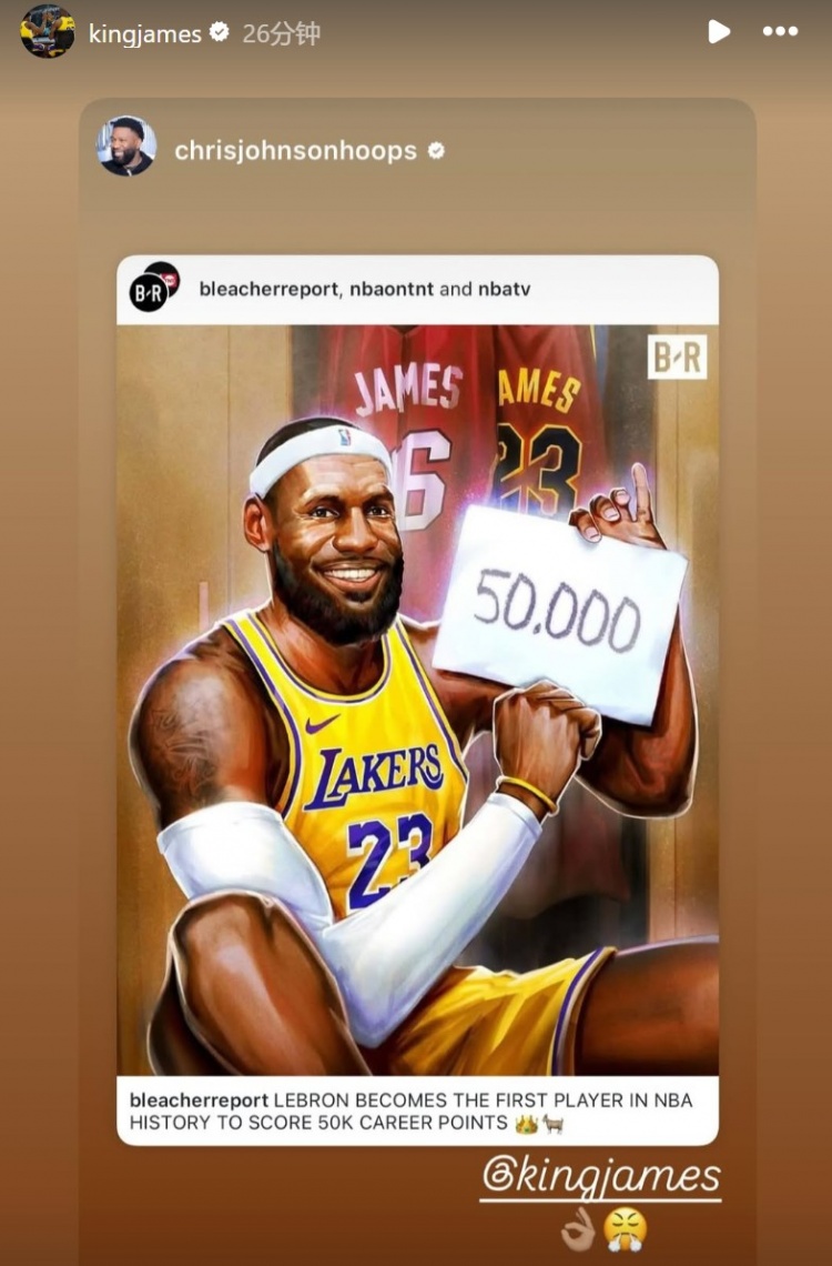 2025-03-05 21:45:40生涯50000分里程碑之夜!詹姆斯赛后转发众多祝福停不下来