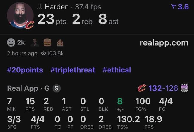 哈登骑士首秀先抑后扬,上半场6中1,下半场7中6包括关键时刻连续轰进两记三分球,最终全场出战约32分钟,投篮13中7(三分8中5),罚球4中4贡献23分2板8助1断,带队132-126击败国王。