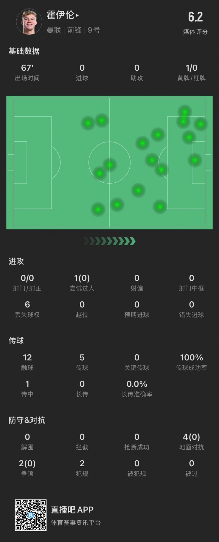 2025-02-27 08:01:38霍伊伦本场:射门关键传球等数据挂零,6次对抗0成功,仅触球12次